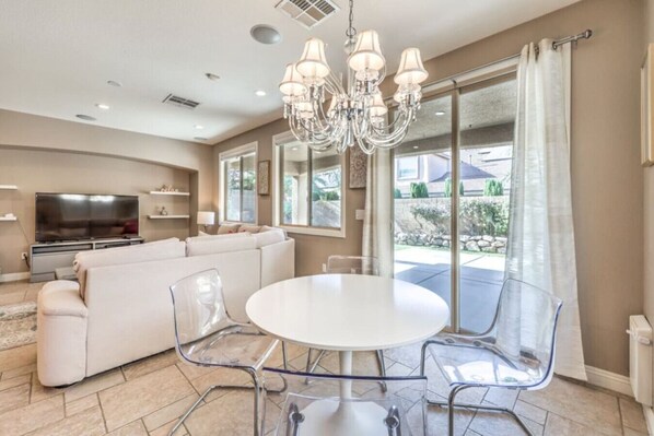 ☞ 31+ Day Stays Only ☞ 2,406 sqft ☞ 4 Bedrooms ☞ Includes casita ☞ Fully Equipped Modern Kitchen ☞ 15 minutes to the Las Vegas Strip! ☞ 10 minutes to the Airport! Welcome to your fully furnished mid-term rental at Copper View – designed for professionals seeking comfort, convenience, and privacy during their extended stay in Las Vegas. Available for 31+ day stays only, this spacious home combines modern design with practical amenities, making it an ideal fit for traveling nurses, executives, and remote workers. Just 15 minutes to the Las Vegas Strip and 10 minutes to the airport, you’ll be close to major employers, hospitals, and business hubs while enjoying the peace of a private residential neighborhood. ☆☆ HIGHLIGHTS ☆☆ This 2,406 sq ft home is thoughtfully furnished and fully equipped for extended stays. The modern kitchen comes with stainless steel appliances, cookware, and a breakfast bar for easy dining. A dedicated office space makes working from home seamless, while high-speed WiFi and smart TVs ensure both productivity and entertainment. Step outside to a private enclosed backyard—perfect for relaxing after long shifts or unwinding with family and friends. The home also features in-unit washer & dryer, central heating & cooling, and plenty of storage space to make your stay stress-free. ☆☆ SLEEPING ARRANGEMENTS ☆☆ 🛏 Primary Suite: King bed + ensuite bathroom with walk-in shower and double vanity 🛏 Bedroom 2: Queen bed 🛏 Bedroom 3: Queen bed 🛏 Casita (Private Guest Suite): Queen bed, full bathroom, mini fridge, microwave & coffee maker The casita provides added privacy and flexibility—perfect for colleagues, visiting family, or those who value separate living quarters. ☆☆ THINGS TO DO ☆☆ Located in a prime part of Henderson, you’ll be within 15 minutes of: Work & Business – McCarran International Airport, Henderson Hospital, St. Rose Siena, and the Las Vegas Convention Center Casinos & Entertainment – The Strip, Green Valley Ranch, Sunset Station Dining & Shopping – The District at Green Valley Ranch, Town Square, Sunset Galleria Mall Recreation – Cornerstone Park, Clark County Wetlands Park, and multiple golf courses nearby ★☆ Book your extended stay today – Copper View offers the perfect blend of work-friendly amenities, privacy, and comfort in the heart of Henderson. ☆★