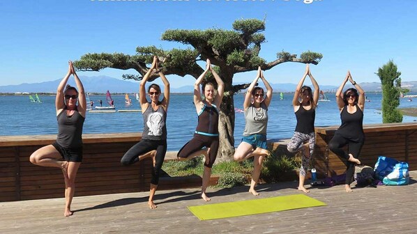 piscine commune chauffée, centre UCPA planche à voile et catamaran, fun board, tennis collectif, terrain de foot, basket, terrains de boules, ping pong, pêche.