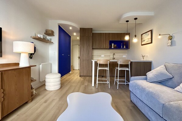 Récemment rénové avec soin, *La Maison Bleue* vous invite à la détente dans un intérieur élégant et cosy. Profitez du doux soleil picard depuis votre balcon/terrasse privé, idéal pour un petit-déjeuner en amoureux ou un apéritif au coucher du soleil.