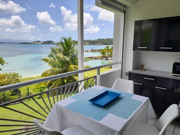 Appartement se trouvant face à la plage avec des cuisines et des patios