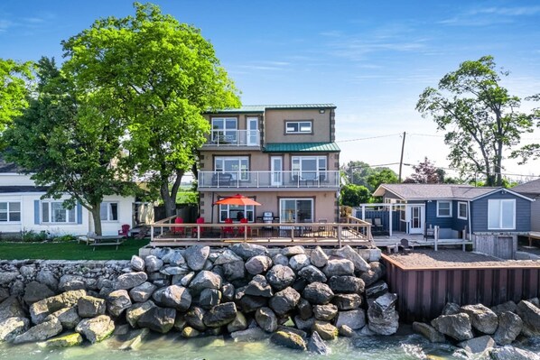Cottage se trouvant en bord de lac avec des cuisines et des balcons