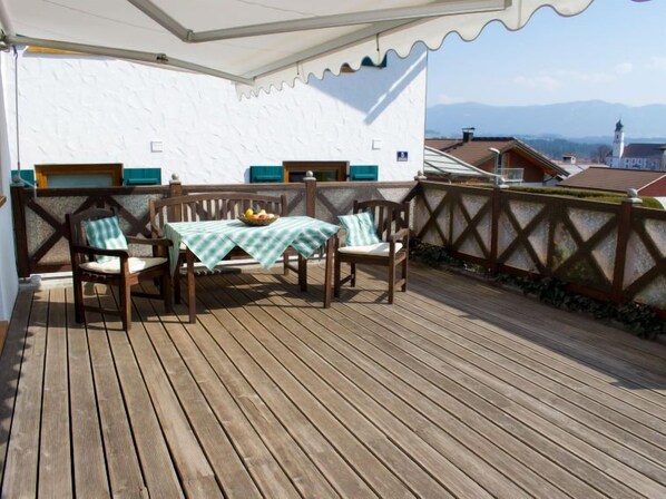 Maison mitoyenne 3 pièces 75 m2 sur 2 niveaux, au rez-de-chaussée. Aménagement confortable et de bon goût: séjour/salle à manger avec TV (satellite), vidéo et chaîne stéréo. Sortie sur la terrasse. Coin cuisine (four, lave-vaisselle, micro-ondes, cafetière électrique). Douche/WC. À l'étage supérieur: 1 chambre avec 2 lits. Sortie sur le balcon. 1 chambre double avec bain/WC. Sortie sur le balcon. Chauffage par le sol. Meubles de terrasse. Belle vue sur les montagnes. A disposition: lave-linge. Internet (Connexion WIFI, gratuit). Veuillez noter: non adapté aux enfants de moins de 12 ans. Maison non-fumeur. Entrée privée, adapté aux personnes allergiques.
