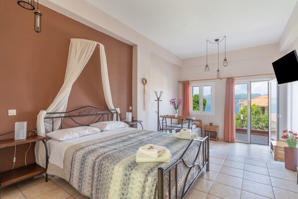 Le studio 3 adultes n° 4 est situé à Nikiana et bénéficie d'une magnifique vue sur la mer Ionienne. La propriété de 35 m² se compose d'un coin salon/couchage, d'une cuisine bien équipée et d'une salle de bain ainsi que de toilettes supplémentaires et peut donc accueillir 3 personnes. Les équipements supplémentaires comprennent un Wi-Fi haut débit (adapté aux appels vidéo), une smart TV avec des services de streaming ainsi que la climatisation. Ce studio offre un espace extérieur privé avec un jardin et un balcon.