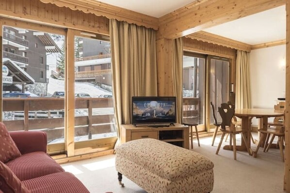 Style, Location, Parking & Wifi This apartment offers ski-to-the-door facilities, being situated just 20 metres from the piste. Shops, bars and lifts are all within 150 metres. The space This spacious second floor apartment was completely renovated to a very high standard. This is one of only a few apartments in this building that truly feel like a home-from-home, offering above-average comfort. The south-facing french windows from both the living and dining room open onto a balcony. The occupancy of the apartment is strictly limited to six people. Bed Linen, Towels and bed making is included and the apartment has its own ski locker. There is parking for one car in a designated space in the garage below the apartment.
