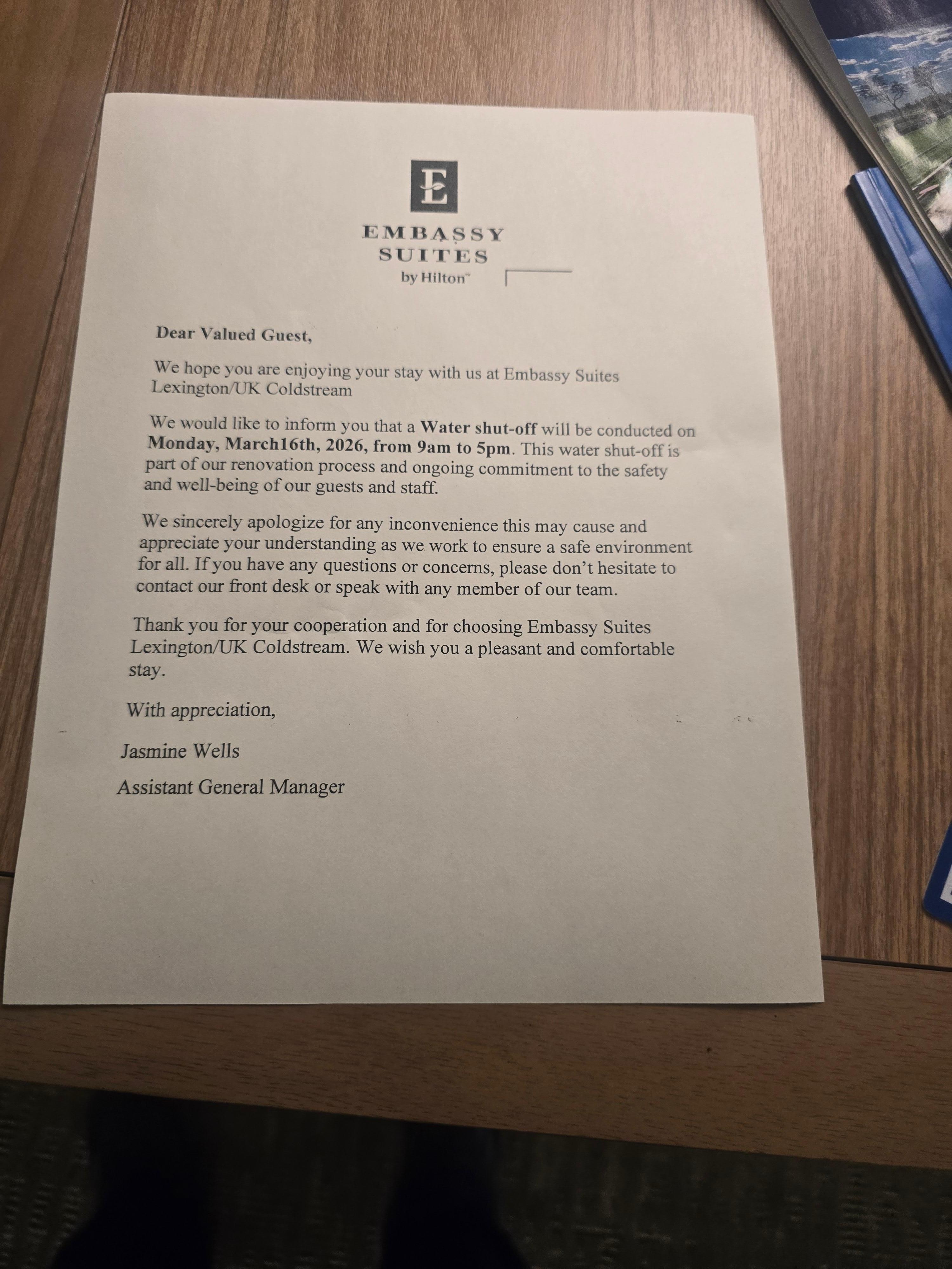 Avoid! This hotel is undergoing major renovations which Expedia does not list. We arrived at our hotel around 6 in the evening to be told the water would be shut off at 9am for the full day. This was on top of our 4th floor room toilet and sink not draining with gross gurgling noises and dirt backing up into them. Partial breakfast. No workout room or pool. And understaffed front desk (1 person) to help everyone "to save money." That is aside from construction dust everywhere and a demolition. We checked out early and lots of others were leaving or just walking out to find another hotel. There are lots of lovely options in Lexington!