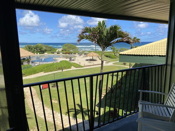 We really enjoyed our stay at the Kauia Beach resort, room 330. The room was nicely furnished and we loved our balcony overlooking the pool area and ocean. The grounds were beautifully manicured and the pool and hot tub area was amazing. Even though the beach wasn't called a swimming beach, we found it lovely for a stroll along the beach! However, I wished we would have had more towels allotted for a seven night stay.