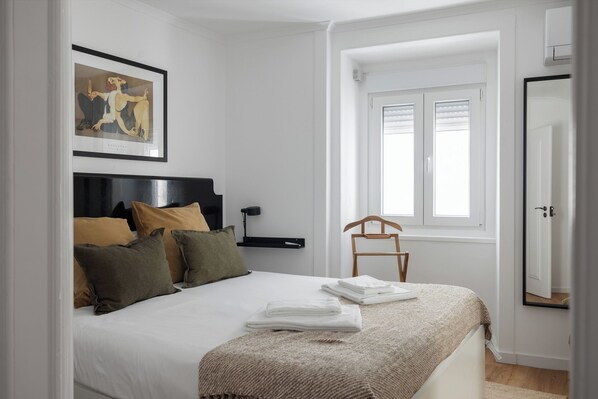 Comfortably hosting up to 4 guests, this charming 2-bedroom apartment is set on the second floor of a traditional Lisbon building. While there’s no elevator, our welcome agent is happy to assist with luggage. Located on the lively Rua do Diário de Notícias, it also features a small balcony overlooking the Bairro Alto rooftops. Chiado, Baixa, Rossio, and Avenida da Liberdade are all within easy walking distance.