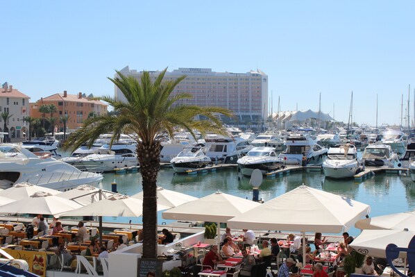 La marina de Vilamoura avec toute sa vie environnementale et caractéristique de la fin d'après-midi et de la nuit, est à seulement 2,5 km
