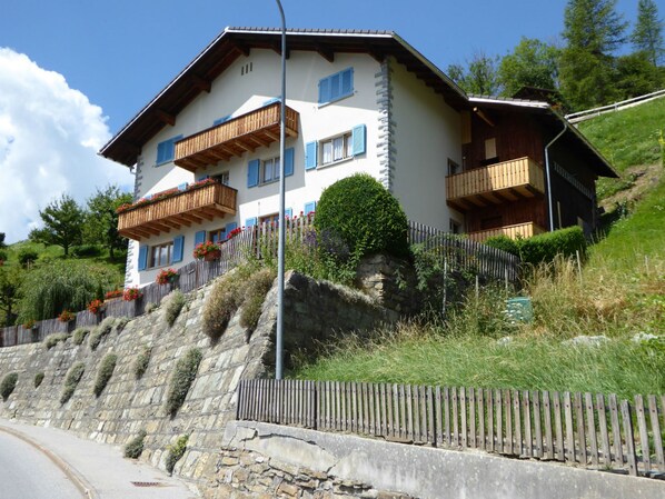 Die Ferienwohnung befindet sich im Parterre eines 3-stöckigen Mehrfamilienhauses. Das Haus selbst liegt in ruhiger Lage an einem windgeschützten, sonnigen Südhang mit einer herrlichen Aussicht auf die Berge und Terrassendörfer der linken Talseite. Eine Autofahrt zur 2.5 km entfernten Talstation der Bergbahnen Lumnezia Obersaxen Mundaun dauert 5 Minuten. Die Zufahrt ist auch mit den öffentlichen Verkehrsmitteln und mit dem Gratis-Sportbus möglich.Im Winter ist das Bergdorf ein idealer Ausgangspunkt für romantische Schneeschuhtouren durch stille und unberührte Schneelandschaften. Von hier aus gelangt man auch auf das weitläufige Winterwanderwegnetz der Val Lumnezia. Von der Ortschaft Cumbel aus kann man Spaziergänge zu den örtlichen Maiensässen und ausgedehnte Wanderungen zum legendären Bündner Rigi machen. Für eine regelmässige Outdoor-Fitness steht ein Vita Parcours in unmittelbarer Nähe zur Verfügung. Ferienangebote der SurselvaIm Umkreis von max. 20 km Entfernung erreicht man vier grosse Ski- und Wintersportgebiete sowie zahlreiche Loipen, Eisfelder, Winterwander- und Schlittenwege und Ausgangspunkte für Skitouren und Schneeschuhwanderungen. Zu den Highlights des Ferien- und Freizeitangebotes in der warmen Jahreszeit zählen u. v. a. das alpine Wandern, Klettersteige, Velotouren, Golf, Mini-Golf, Tennisanlagen, Paragliding, Baden in Freibädern und naturnahen Seen, Wellness, Riverrafting, Fischen, Kinderspielplätze, kulturhistorische, botanische und geologische Führungen sowie kulinarische Wanderungen. Parkplatz vor dem Haus sowie Garagenparkplatz neben der Wohnung. Haustiere nicht gestattet. Nichtraucher-Wohnung. Entdecken Sie die attraktiven Leistungen unserer Gästekarte.Schlafzimmer: Die Wohnung verfügt über zwei Schlafzimmer mit je einem Doppelbett sowie einen geräumigen Nebenraum mit einem zusätzlichen ausklappbaren Doppelbett. Bettwäsche vorhanden und im Preis nicht inbegriffen. Wohnzimmer: Gemütliches Wohnzimmer mit Radio, TV Satelliten/Kabel, WLAN. Küche: Die heimelige und offene Küche zum Wohnzimmer ist ausgestattet mit Backofen, Kaffeemaschine (Kapseln vorhanden), Mikrowelle, Geschirrspüler, Wasserkocher, Fondue-Set, Raclette-Ofen. Küchenwäsche vorhanden und im Preis inbegriffen. Badezimmer: Modernes Bad mit Dusche/WC. Frotteewäsche vorhanden und im Preis nicht inbegriffen. Andere Räume:Die Ferienwohnung bietet zudem einen schönen Sitzplatz, Waschmaschine und Wäschetrockner (im Preis inbegriffen), Abstellraum für Winter- und Sommersportausrüstungen.Ausstattung3 Schlafräume, Backofen, Geschirrspüler, Haustiere nicht erlaubt, Internetverbindung, Kaffeemaschine, Küche, Küchenwäsche, Kühlschrank, Radio, Terrasse, Tisch- und Küchenwäsche, TV, Wäschetrockner, Wäschetrockner im Haus, Waschmaschine, Waschmaschine im Haus, Wasserkocher, WiFiBadezimmerAnzahl Badezimmer: 1, HaartrocknerDienstleistungenFahrradabstellraum, Garage, ParkplatzKapazitätenAnzahl der Zimmer, Betten: 4LageAm Golfplatz: 10, An Velo-/Bikeroute gelegen: 1, Entfernung Thermalbäder (in km): 13, Entfernung zum Golf/Minigolf (in km): 13, Entfernung zum nächsten Bahnhof (in km): 8, Entfernung zum nächsten Restaurant (in km): 0.3, Entfernung zum nächsten Skilift (in km): 2.5, Entfernung zum See (in km): 5, Entfernung zum Wald: 0.5, Entfernung zur Altstadt (in km): 7, Entfernung zur Dorfmitte (in km): 0.5, Entfernung zur Loipe (in km): 4, Entfernung zur nächsten Haltestelle (in km): 0.4, Hanglage, Ruhige UmgebungUnterkunftstypFerienwohnungBelegung1-6 Personen1-6 Erwachsene0-5 Kinder (0-17 Jahr(e))