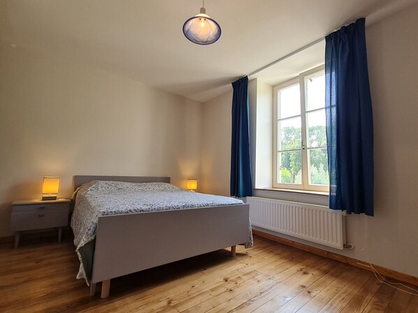 Deux chambres, un lit 2 personnes dans la première, deux lits 1 personne dans la seconde.
