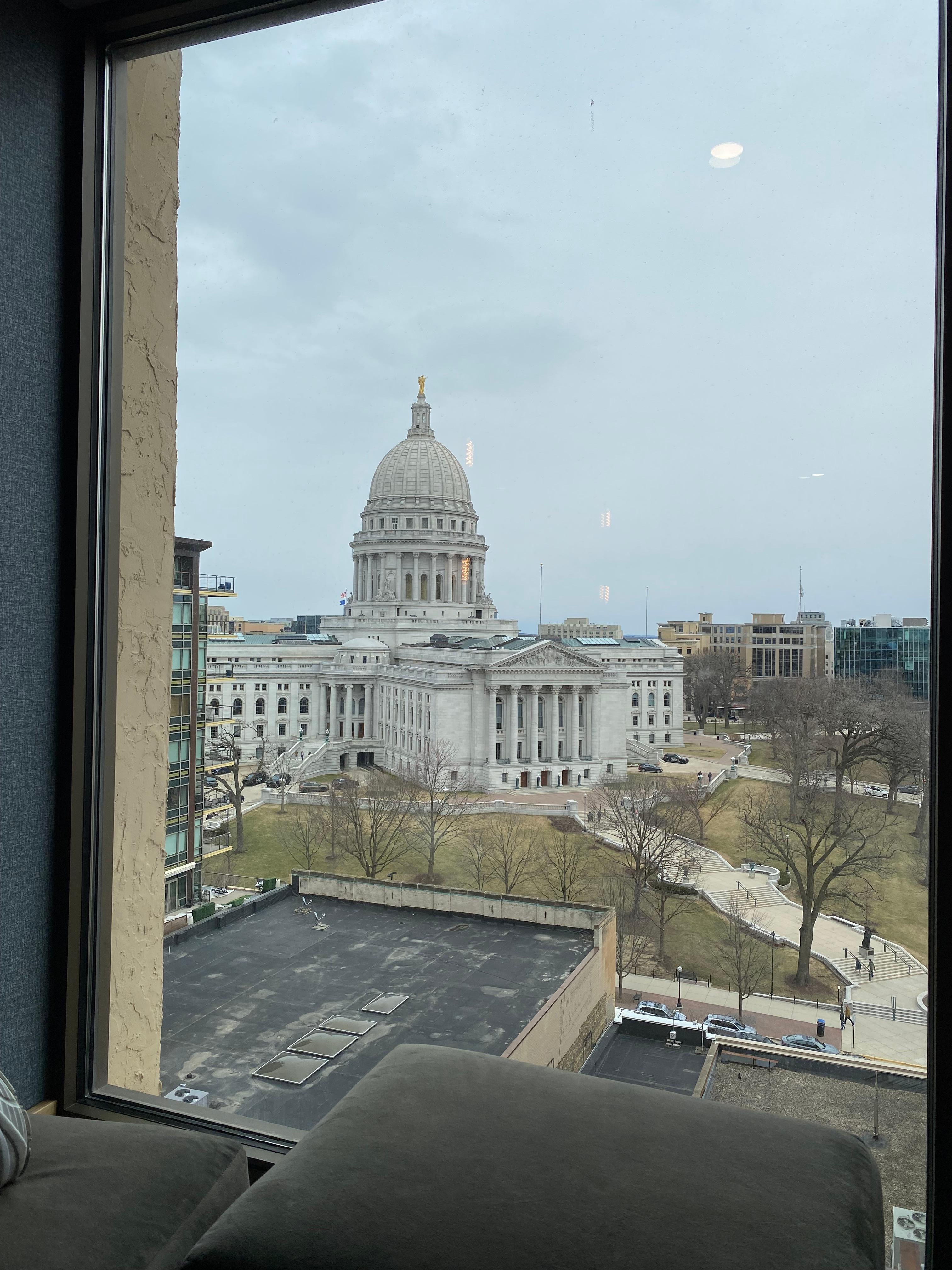 Stayed while in Madison for a performance at the Overture Center. Easy walk to the theater, restaurants around the square and State Street. Excellent hotel. Upgraded to a club room for not too much $ and enjoyed the lounge with complimentary drinks, appetizers, desserts, access to the library and soda and water all day. Will stay again. Hopefully soon!