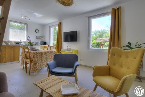Bienvenue dans notre spot nature, lové entre la rivière Séran, au pied de la montagne la Charmette et à 20 minutes à pied (départ du gîte) de la côte sauvage du lac de Barterand. Ressourcement à la porte du gîte : baignade au lac, randonnée à pied ou à cheval, cyclo tourisme où simplement, farniente, détente….sur un air de vacances ! Les deux gîtes communiquent par une porte , ils s'ouvrent avec ses trois espaces extérieurs. Coté Est, le salon de jardin s'offre comme une parenthèse isolée, côté Sud, l'espace repas profite de sa vue dégagée sur le paddock, et côté ouest, c'est la vue sur la montagne Charmette. Décoration actuelle du gîte, couleurs chaudes, luminosité, vous enveloppent d'une sensation de bien-être en franchissant la porte d'entrée. Les gîtes sont équipés tout confort. Au rez-de-chaussée, ce sont les pièces de vie, avec deux cuisines ouvertes et leur espace repas, deux coins salons, l'un est équipé d'un canapé convertible. Deux salles d'eau, deux WC indépendants avec lave-mains. Une grande table est installée à l'ombre des arbres l'été. Pour l'hiver les gîtes offrent un coin repas pour 6 personnes et un coin repas pour 8 personnes Une chambre dispose d'un lit en 160*200, une 2ème chambre dispose de trois lits simples (90*190). Accessible par un autre escalier, la 3ème chambre familiale avec vue sur le pré, propose un lit en 140*190 et deux lits simples en 90*200. Les animaux sont les bienvenus . Pour les cyclos touristes et les motards, possibilité de ranger vélos et motos dans un abri fermé. Le tarif de la location est tout inclus pour votre plus grand confort. Il comprend les draps, le linge de toilette, le ménage de départ et les charges. A noter : Le gîte est mitoyen à une location à l'année, le parking commun, la cour pour accéder au gîte est gravillonnée avec des gros graviers. Le gîte est le résultat du regroupement de deux hébergements mitoyens, accessibles depuis l'intérieur (G341020 et G341021). A 400 m du Lac de Barterand, entre lacs et montagnes, idéal en toutes saisons.
