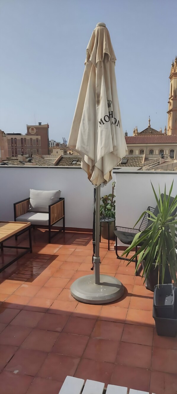 Cette location de vacances dispose d'un toit ouvert partagé pour des soirées détendues.