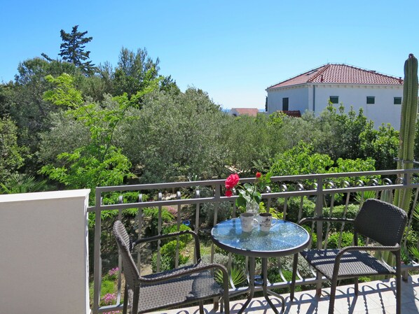 Maison 4 pièces 75 m2 sur 2 niveaux. Séjour/salle à manger avec 1 divan-lit et TV (satellite) (écran plat). Sortie sur le balcon. 1 chambre avec 1 grand-lit (160 cm). 1 chambre avec 2 lits. Cuisine ouverte (four, 4 plaques vitrocéramiques, grille-pain, bouilloire électrique, congélateur, cafetière électrique) avec air-conditionné. Douche/WC. À l'étage inférieur: (escalier extérieur) 1 chambre avec 1 grand-lit (160 cm). Douche/WC. Pas de chauffage. Balcon. Mobilier de balcon. A disposition: moustiquaire. Internet (Connexion WIFI, gratuit).