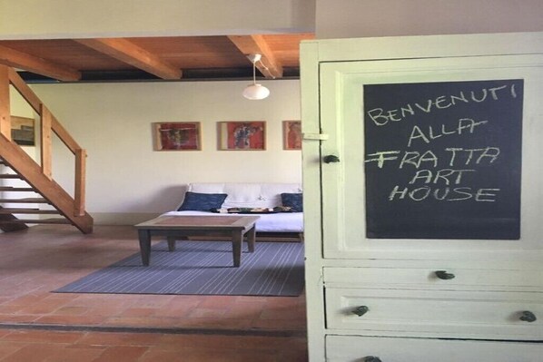 La Fratta est immergé dans la nature de la campagne de la région de Marsciano, dans la province de Pérouse, à seulement 20 minutes en voiture du centre de Pérouse. Rénové dans le plein respect de son époque, il a été personnalisé et conçu dans leur ameublement, avec des interventions artistiques qui expriment le soin et l'envie de recréer un espace réinterprété, neuf, vivant, chaleureux. À l'extérieur seulement la paix et la tranquillité. Un grand jardin où vous pourrez passer des heures de détente, au bord de la piscine ou déjeuner aux tables mises en place pour les invités .... L'appartement est indépendant mais inséré dans la structure où vivent également les propriétaires, Elisabetta, Luca et le petit Eugenio. En fait, La Fratta est également la maison et l'atelier de Luca Leandri, sculpteur en céramique et de son épouse Elisabetta. Avantage principal: rentrez chez vous avec vos propres oeuvres réalisées pendant les vacances en vous assurant un enrichissement ludique et culturel. Pour des raisons d'organisation, il est préférable de demander des informations au moment de la réservation.
