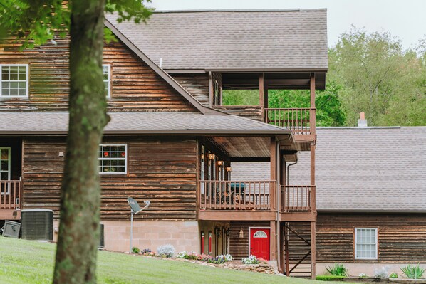 Situated on 7.5 private hilltop acres, WolfRun Manor offers a stunning view with plenty of room to spread out, enjoy yard games, sit on any of the decks or relax in the hot tub and watch the wildlife. Hiking trails are on the property.
