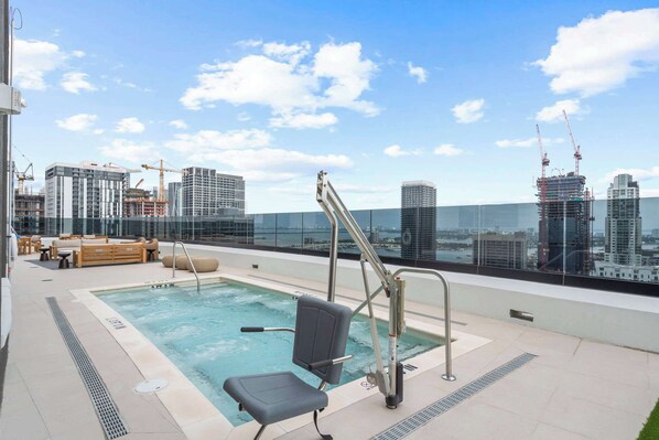 🌇 Rooftop terrace with pool and panoramic views of the Miami skyline and Biscayne Bay.