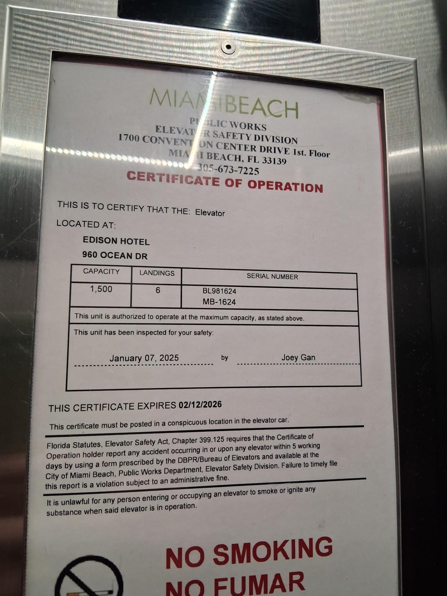 Staff was very pleasant building condition wasn’t the best but it was 300 a night in south beach what more can I say. Great overall experience