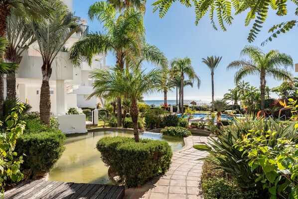 L’espace extérieur privé comprend une terrasse couverte et un barbecue. Vous aurez aussi accès à un espace extérieur commun avec piscine, jardin et bassin pour enfants. Un court de tennis se trouve à 15 minutes à pied de la propriété. Les horaires et la disponibilité de la piscine peuvent varier en raison de circonstances indépendantes de la volonté de l’hôte.