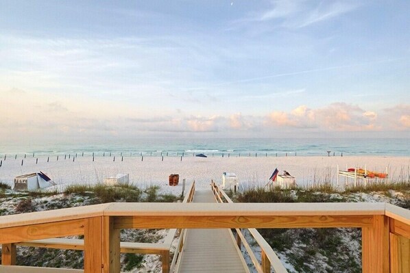 Quiet corner getaway condo with easy walk to pool or private beach.