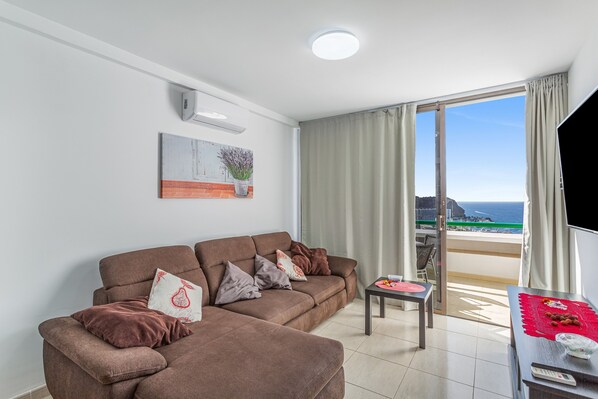 Situé à Puertorico, l'appartement de vacances Calipso sun and beach offre aux clients une vue fantastique sur l'Atlantique. La propriété de 3 étages se compose d'un salon avec un canapé-lit pour 2 personnes, d'une cuisine (sans lave-vaisselle), d'une chambre et d'une salle de bain et peut donc accueillir 3 personnes. Les équipements supplémentaires comprennent un Wi-Fi haut débit (adapté aux appels vidéo) avec un espace de travail dédié pour le télétravail, une smart TV avec des services de streaming, la climatisation, un ventilateur, une machine à laver ainsi qu'un séchoir. Un lit bébé est également disponible. Cette location de vacances propose 2 terrasses pleines et un balcon pour votre usage exclusif.