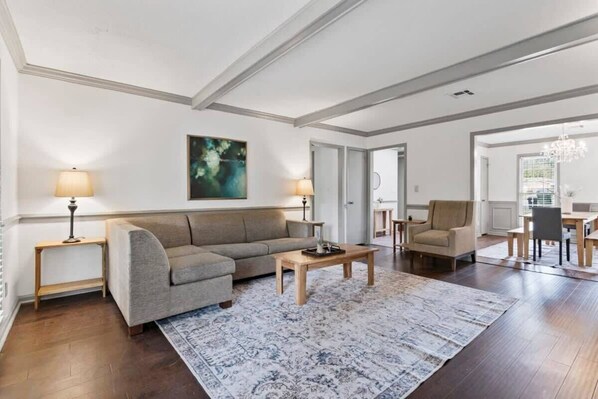 Our charming 5BR, 3BA home in a quiet cul-de-sac accommodates up to 16 guests! Enjoy a cozy living room, spacious bedrooms, a fully-equipped kitchen, and a large fenced yard—perfect for a Montgomery retreat. Minutes from dining, shopping, and just 10 minutes from downtown. Ideal for large families and groups. Pets welcome with a fee. We’ve included both professional and real-time photos from our cleaning team so you know exactly what to expect.