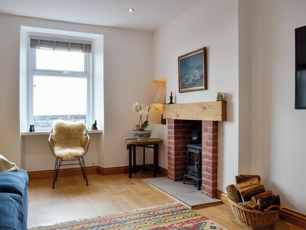 Living room: Smart TV, Woodburner