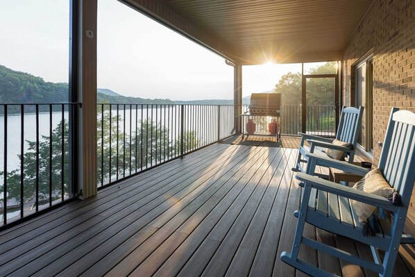 - Expansive screened-in deck for BBQs