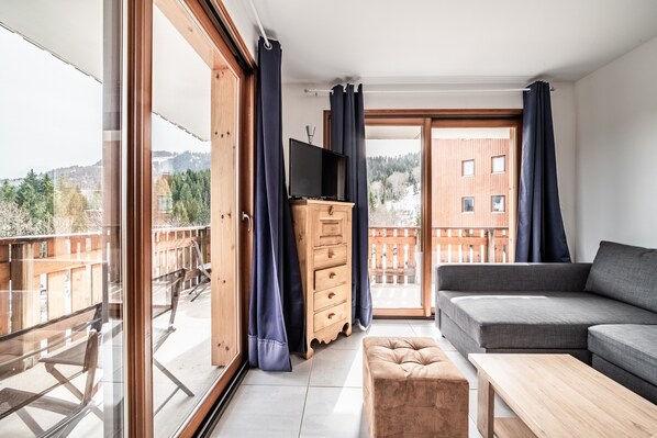 Cet appartement à Morillon au pied des pistes est le choix parfait pour un séjour ski pratique, confortable et avec vue, été comme hiver.