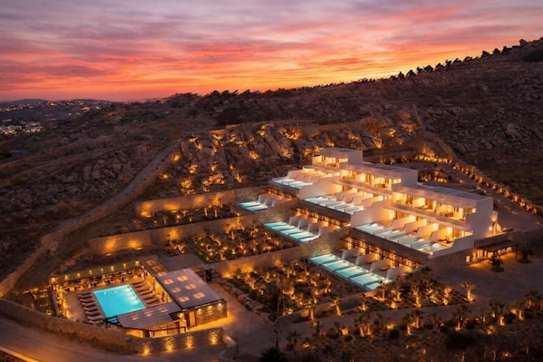 Muse of Mykonos vous donne rendez-vous à Mykonos, plus précisément près de l'aéroport. Les célèbres Nouveau port de Mykonos et Vieux port de Mykonos valent le détour si un minimum d'action est à l'ordre du jour. L'aventure, très peu pour vous ? Vous préférez vous poser et apprécier la beauté naturelle des lieux ? Partez à la découverte des non moins emblématiques Paradise Beach et Plage de Super Paradise. Consultez notre guide de voyage sur Mykonos