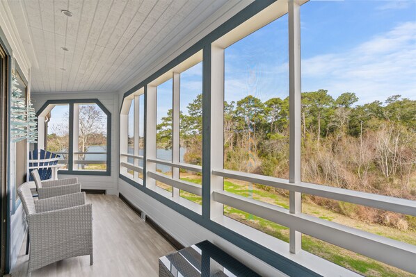 This 3rd floor unit (sorry no elevator) is a short 10-minute walk to the beach (approx. 1/2 mile) and features a large screened-in porch overlooking Dunes Lake at Dunes Golf & Beach Club. This beautifully updated unit has vinyl plank flooring throughout the main level, an updated kitchen, 4 flat screen smart TV's, free Wi-Fi and an in-unit washer & dryer.