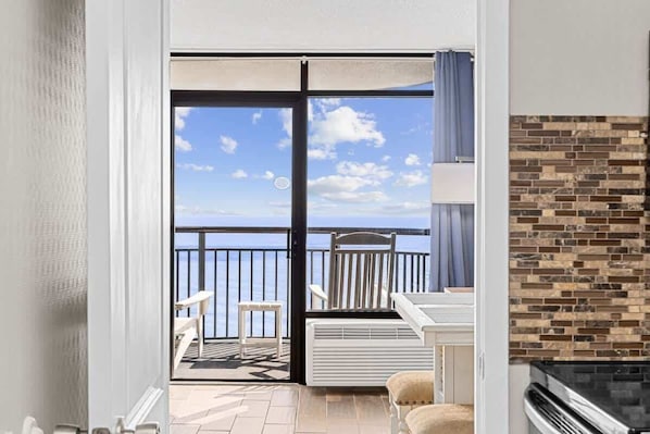 Views of the ocean and the beach are complemented by this lovely 1-bedroom oceanfront condo with an extended balcony.