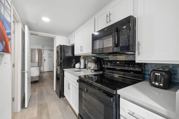 Réfrigérateur, micro-ondes, four, plaque de cuisson