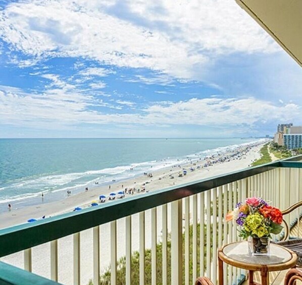 Your Family's Luxurious Beachfront Retreat, imagine waking to the gentle rhythm of the waves and the golden hues of sunrise painting the ocean horizon - all from the private baclony of your exquisitely appointed beachfront condo. Welcome to a haven where luxury seamlessly blends with family-friendly comfort, creating unforgettable memoris that will last a lifetime. Discover this enchanting 2-bedroom gem in Myrtle Beach. This soothing condo features 1 king bed, 2 double beds, 2 bathrooms with a jetted bathtub, and a cozy living room with a sofa bed. This is a pleasant retreat for those looking to unwind and relax by the beach. A great place to call homebase while you're away, we hope you enjoy your stay.