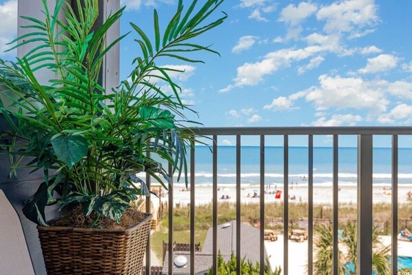 Watch the sun rise over the Atlantic Ocean from your own private balcony! You and your family are safe and sound within the walls of this fun and cozy gated resort. The Myrtle Beach Resort boasts 5 pools, a water park, tennis courts, a playground, gym with sauna, as well as the Quarterdeck beach front bar and grill. We are centrally located just minutes from the Grand Strand, as well as all the great Myrtle Beach attractions! And the best part, you are just a 40 yard walk to putting your toes in the sand! We know you will want to stay with us again and again!