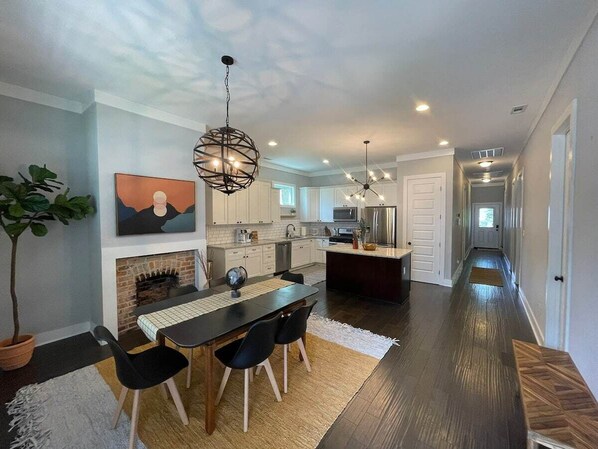 The home features a bright, open-concept layout with modern touches and warm Southern character. It’s perfect for winding down after a day of exploring, holiday shopping, or ringing in the New Year.