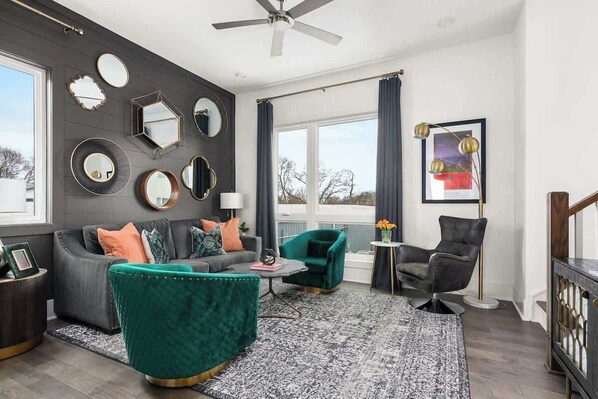 If you're craving bold design, walkable eats, and a short hop to downtown, Vibehaus delivers. This vibrant East Nashville townhome has serious personality and space for up to 12 guests. Located in the fast-growing Trinity Lane corridor, you’ll find breweries, cocktail bars, and coffee shops just a short walk away—and Broadway is a quick Uber ride when you’re ready to head downtown!