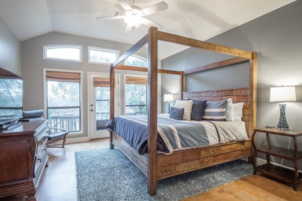 Gruene Vista sur la Guadalupe est récemment mis à jour et prêt à accueillir votre prochaine escapade avec votre famille et vos amis. Étape à l'intérieur et vous serez instantanément accueillir par un espace de vie relaxant, confortable et spacieux, avec une grande TVHD et de belles vues sur l'extérieur à travers les grandes fenêtres. La cuisine est entièrement équipée avec tous les ustensiles de cuisine et de salle à manger et, entre la grande table à manger et le bar, il y a beaucoup d'espace pour accueillir confortablement votre groupe jusqu'à 12 personnes (occupation maximale pour la maison). Gruene Vista dispose d'un plan d'étage de 4 chambres, 3. 5 salles de bain, qui tire le meilleur parti de 3400 pieds carrés de la maison. En bas, vous trouverez la charmante chambre des maîtres avec salle de bain attenante, une deuxième chambre avec un lit king-size, une troisième chambre avec un lit queen et un canapé-lit supplémentaire dans l'espace bureau / étude. Pour les grands groupes, la chambre à l'étage avec lit king-size, lit queen et salle de bain attenante offre un espace de couchage supplémentaire et l'intimité d'être la seule chambre au deuxième étage.