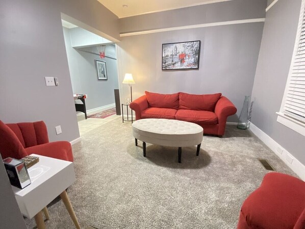 We have two bedrooms, each with a full-size queen bed. The bathroom has just been remodeled, and features a tub/shower combo for flexible bathing options.