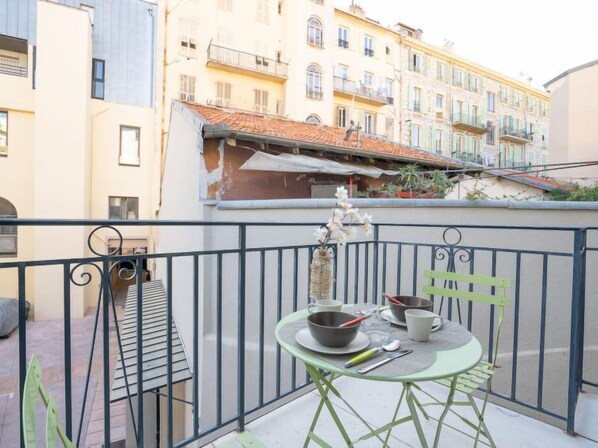 Apt 2 pièces 35 m2 sur 3 niveaux au 1er étage. Clair, aménagement agréable et moderne: séjour/salle à manger avec baie vitrée avec air-conditionné. Sortie sur le balcon. Coin cuisine (4 plaques à induction, micro-ondes, cafetière électrique). Chauffage, air-conditionné. À l'étage supérieur: galerie avec TV (écran plat). 2ème étage: galerie avec 1 grand-lit (140 cm, longueur 190 cm), douche/WC et air-conditionné. Petit balcon 10 m2. Mobilier de balcon. A disposition: lave-linge, fer à repasser, sèche-cheveux. Internet (Connexion WIFI, gratuit). Veuillez noter: logement côté cour. Au lieu d'une chambre fermée, des espaces de couchage sont situés dans une zone ouverte (galerie, alcôve...). 06088009695MX