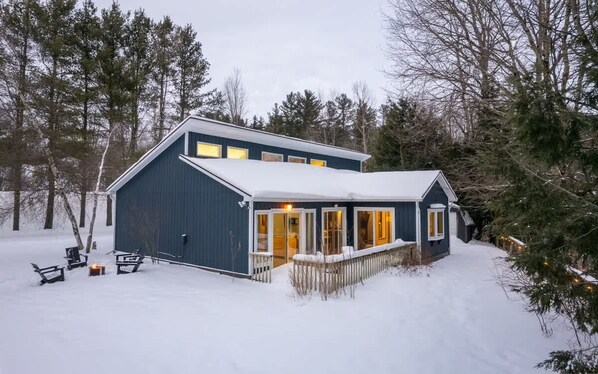 Our family-friendly getaway has been thoughtfully updated with modern-day amenities for the utmost enjoyment: a peaceful setting, three bedrooms, one bathroom, renovated kitchen, outdoor fire pit area, EV charger, washer and dryer, modern decor and amenities...all while being less than 10 minutes away to Jay Peak Resort.