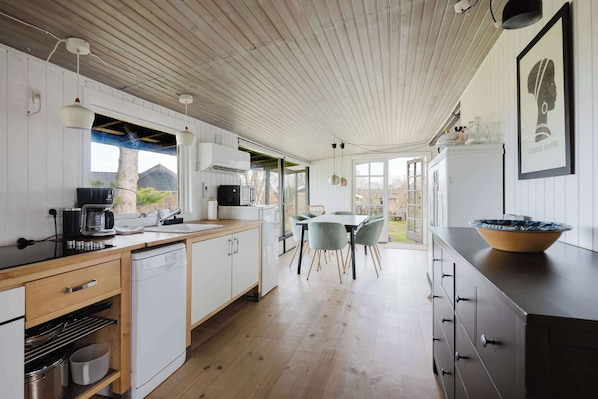 The kitchen is fully equipped with everything needed to prepare meals during your stay. Whether you’re cooking a simple breakfast before heading to the beach or enjoying a relaxed dinner after a day outdoors, the space makes dining together easy and enjoyable.