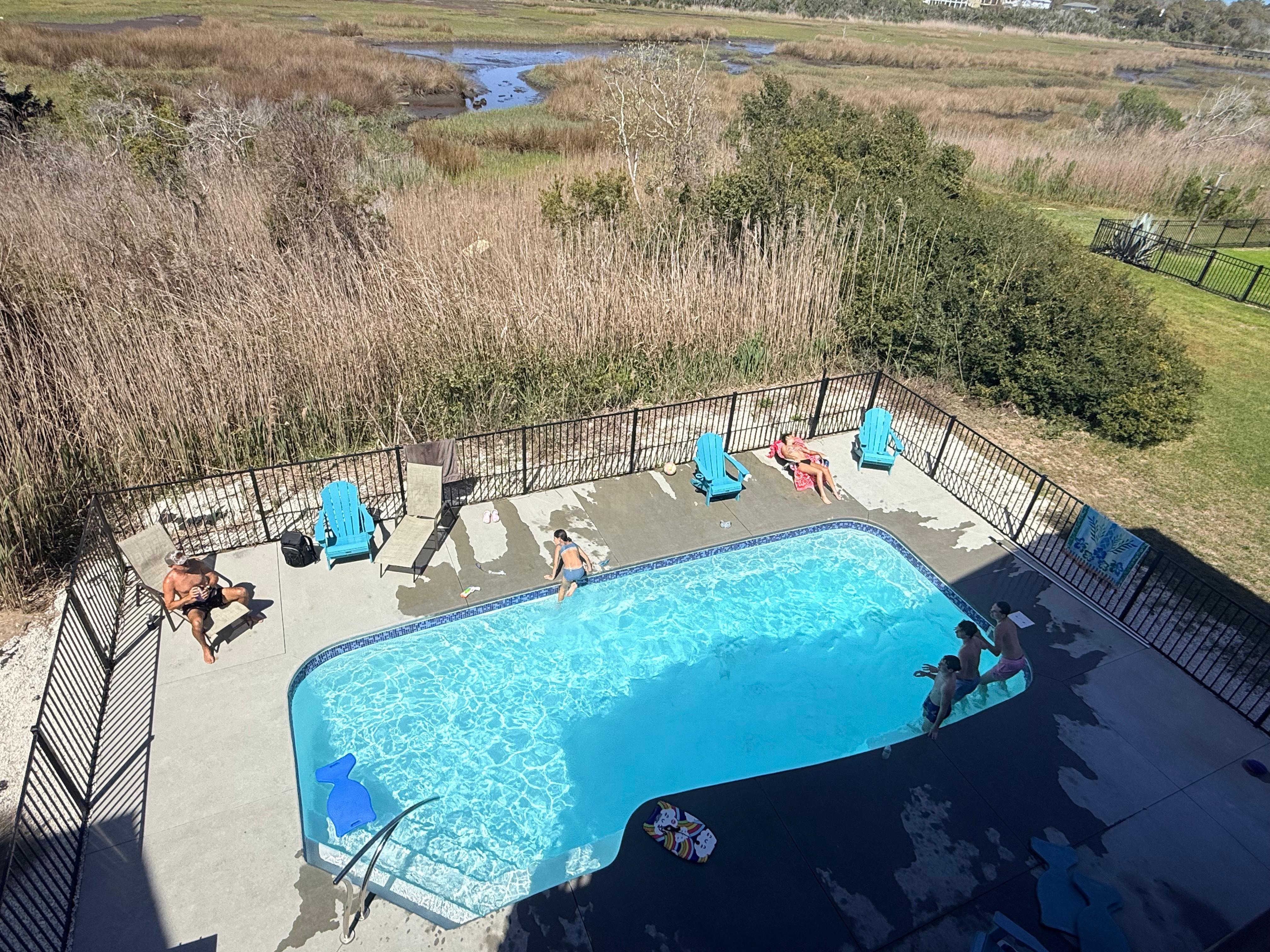 5 bedrooms are on the first floor. Comfortable beds, extra blanket and pillow in each closet.The two queen rooms share a rather small bathroom, and the two bunkrooms share a small bathroom so keep that in mind when assigning family to each space. Top floor holds the master suite, kitchen, living room and a half bath. Living room and dining area are large and plenty of room for all of us. Comfortable and clean space. Kitchen-no Tupperware, no large cooking skillets. Either the stovetop cooks very slow or the skillets are warped. Either way, it took a long time to cook dinner. Plenty of glasses and silverware.Only one refrigerator which isn’t enough considering there are 6 bedrooms.The fridge was broken when we arrived. They delivered two dorm-size fridges until someone could come fix it. Reaching someone at the rental company was quick and easy. Pool- there are only 2 lounge chairs so plan ahead if you like to sunbathe. 4 Adirondak chairs. There is a gas grill which hadn’t been cleaned in AGES! Outdoor shower area was stuffed full of beach equipment so we couldn’t use it, but were glad to have the gear. There were 5 beach chairs, 2 beach wagons and 2 shovels our teens used. Game room was very disappointing. Air hockey table gets power but doesn’t work. We called and were told it couldn’t be fixed. It should be removed from the house AND the website for accuracy. Shuffleboard has no sand so also weren’t able to use that either. There were 6 teens and they were all