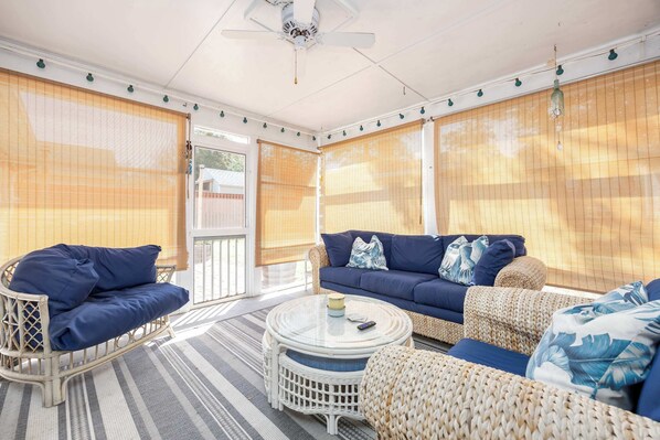 This beautifully remodeled Key West-inspired bungalow welcomes guests 25 and older or families for a relaxing bayside retreat. Your stay includes all household linens—sheets, towels, and kitchen sets—just bring your beach towels!