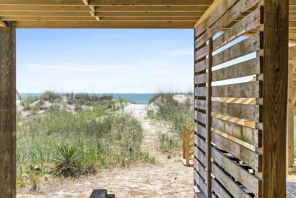 My family and I had a great stay. The house was clean, and easy to toddler-proof. I loved the big dining room table that had room for all of us too sit comfortably. Although there isn't a wooden walkway, the beach was easily accessible via a roped off path thru the dunes. We also enjoyed sitting on the back deck watching and listening to the waves, and were grateful for the overhanging roof over part of it. Overall an excellent experience.
