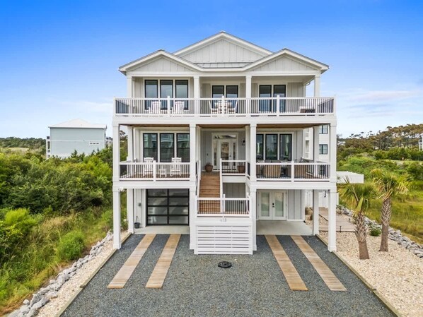 Second Wind offers unique design elements for a beach experience like no other. Its stunning reverse floor plan places the modern kitchen on the top floor, providing sweeping views. Imagine sipping your morning coffee as the sunrise fills the sky with vibrant colors, or enjoying breathtaking sunsets over the serene Intracoastal Waterway from the back decks. These spacious decks also offer plenty of room for sunbathing, grilling, or simply soaking in the refreshing Carolina breeze.