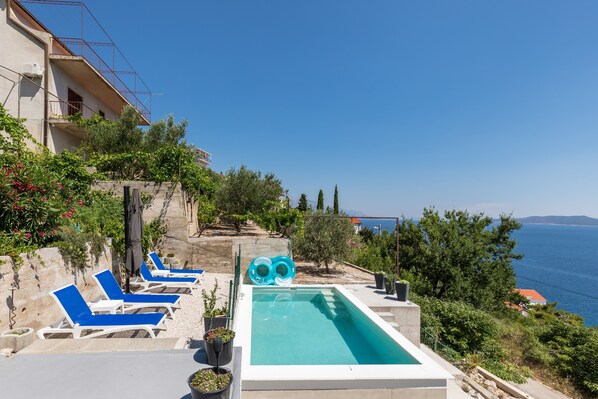 Die Appartmentanlage liegt ruhig gelegen in Steilhanglage mit spekatulärer Sicht auf das Meer und die Insel Brac. Sie besteht aus 4 Wohneinheiten, davon wird eine Wohneinheit von den Vermietern selbst bewohnt. Hermien und Steve waren super tolle Gastgeber, von der Anfahrt über den Check-In war die Kommunikation perfekt. Hermien stand uns während des gesamten Urlaubs für Tipps, Buchungen z.B. für Boots-Trips oder Restaurantreservierungen immer hilfsbereit zur Verfügung. Das Appartment ist mit viel Liebe zum Detail und mit allem was man benötigt ausgestattet. Vom Pool hat man einen grandiosen Ausblick auf die Insel Brac. Die gesamte gepflegte Anlage ist in Terrassenform angelegt und es gibt mehrere verschiedene Sitzmöglichkeiten, von wo man den Ausblick geniesen kann. Kiesstrand mit kristallklarem Wasser und Einkaufsmarkt sind in ca. 5 Minuten fußläufig zu erreichen. Dort und im kleinen Hafen von Mimice gibt es Bars und Restaurants, aber alles in einer gesamt ruhigen Atmosphäre. Liebe Hermien und Steve - wir haben uns rundum wohl gefühlt. Danke für einen tollen Urlaub