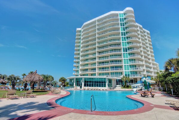 Beautiful view of the bay. Dolphins galore. Condo was beautiful. The owners gave a lot of thought as to what people would like. The pools were great and the lazy river was a big success. This is our third trip to Orange beach but our first stay at caribe. We will definitely be coming back.