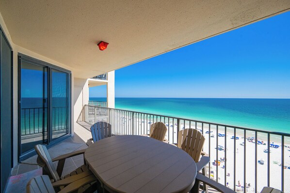 Step outside onto the Gulf front balcony and immerse yourself in the beauty of the coastal landscape. Dine al fresco at the table with six chairs, perfect for enjoying meals with a view, or simply unwind and soak in the grandeur of the Gulf.