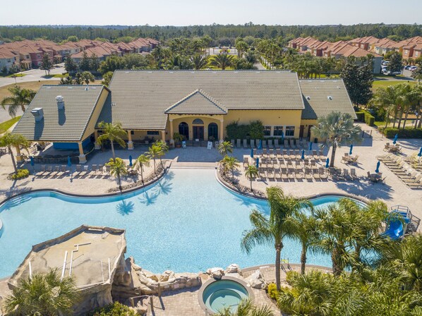 - Gated avec 24 heures de sécurité - Piscine de style resort avec cascade et toboggan - Piscine pour enfants - Jacuzzi 2 Grotto - Bar Tiki au bord de la piscine - Cinéma - Centre de remise en forme - Sauna - Terrain de jeu - Terrain de volley-ball sur sable - Courts de tennis - Terrain de basket-ball - Conciergerie